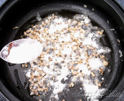 Add in 2 heaping tablespoons flour. Sprinkle it evenly over the fat.